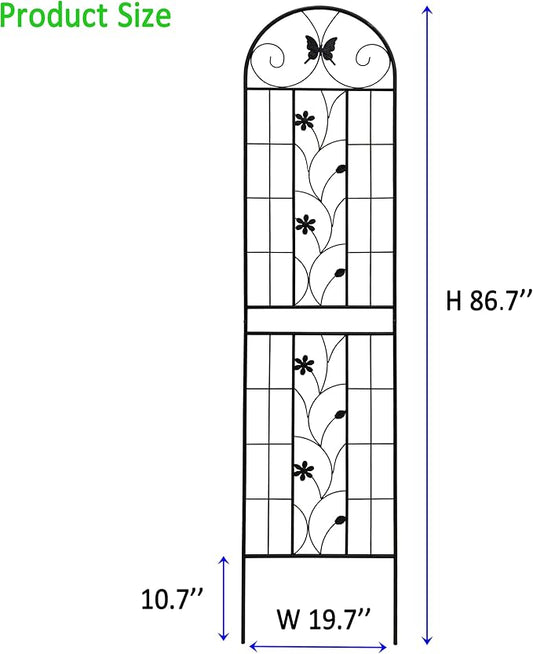 2 Pack Metal Garden Trellis for Climbing Plant Rose Stand, Black Outdoor 86.7" Tall Flower Support Iron Garden Fence (Black 86.7" H,2Pack)