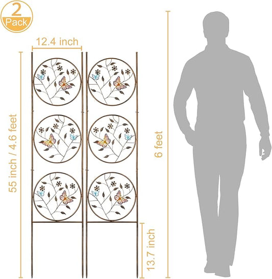 SUNNYPARK Set of 2 Butterfly Metal Garden Trellis for Climbing Plants, Decorative Vegetables Flowers Vine Trellis for Outdoor Patio 55'' H x 12.4'' W