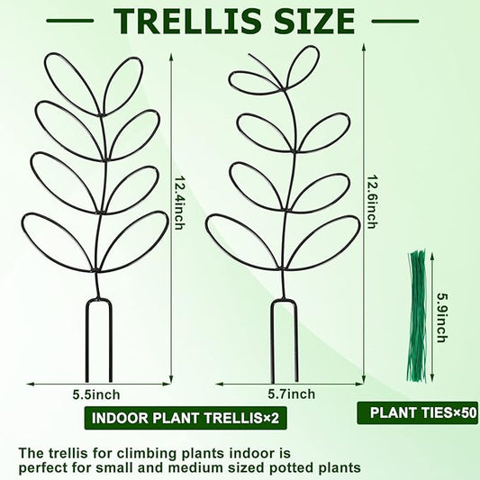 AUGSUN 2 Packs Indoor Plant Trellis Garden Trellis for Climbing Plants, 12 Inch Metal Leaf Shape Small Trelli for Potted Plants Plant Support for Houseplant with 50 Ties
