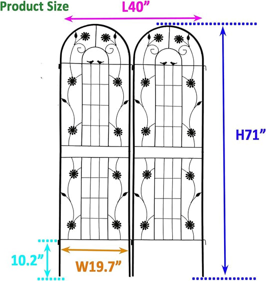 2 Pack Metal Garden Trellis for Climbing Plant Rose Stand, Black Outdoor 71'' Tall Flower Support Iron Garden Fence (Black 71''H