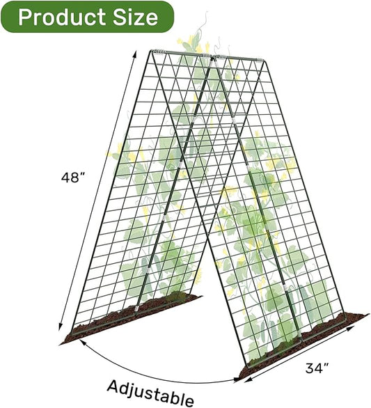 AGTEK 34" x 48" Foldable Cucumber Trellis with Garden Stakes and Zip Ties Plant Support A Frame Metal Trellis for Climbing Plants, Cucumber, Vegetable, Flowers
