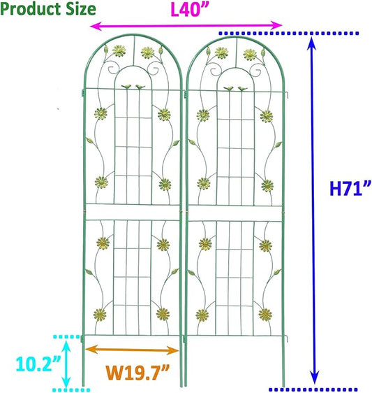 2 Pack Metal Garden Trellis 71" Black Fence Rustproof Garden Trellis for Climbing Plants Support Roses Flower Outdoor Lawn, Black