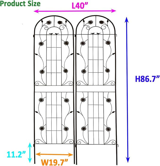 Metal Garden Trellis Rustproof Trellis for Climbing Plants Outdoor Flower Support (Black-2 Pack, 86.7"x19.7")