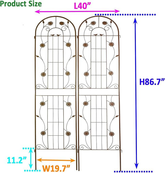 2 Pack Metal Garden Trellis for Climbing Plant Rose Stand, Brown Outdoor 86.7'' Tall Flower Support Iron Garden Fence, Brown