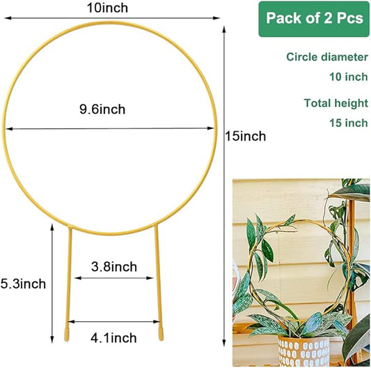 2 Pack Circle Trellis for Climbing Plants Indoor, 15" Gold Small Plant Support Stakes, Flower Houseplant Hoya Support for Potted Plants & Garden Stem Vines