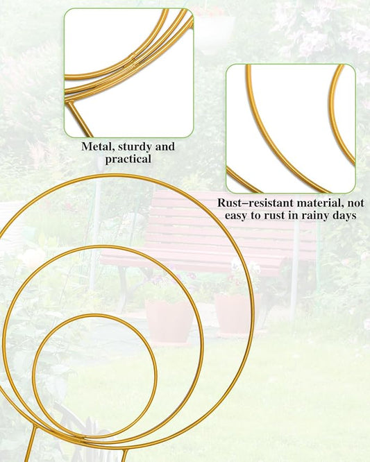 3 Pack Premium Round Plant Trellis Indoor, Small Metal Plant Support Stake for Climbing Plants, Different Sizes Gold Garden Trellis for Ivy and Flowers Outdoor