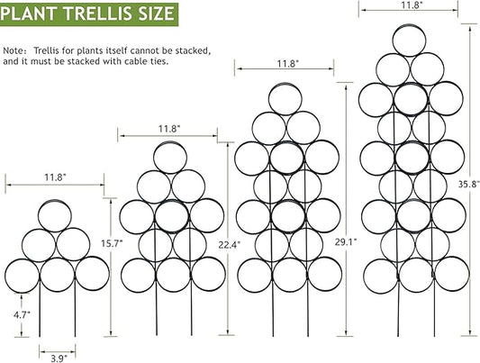 Stackable Metal Trellis for Climbing Plants Outdoor & Indoor - 4 Pack Garden Trellis for Potted Plants, Rust-Resistant Plant Support Stakes for Vines, Flowers - Sturdy Plant Trellis