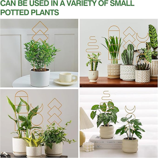 Indoor Plant Trellis for Potted Plants, 16inch Gold Small Trellis for Climbing Plants Outdoor Garden Metal Trellis with Different Patterns for Vine Ivy Flower Plant Support 4 Pack