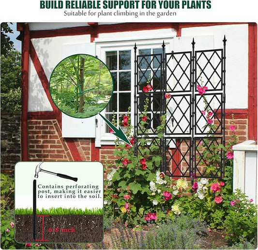 Garden Trellises, 4 Pack Black Metal Coated Rustproof Trellis for Climbing Plants Outdoor, Roses, Vines, Flowers, and Vegetables-86.7" x 19.7"