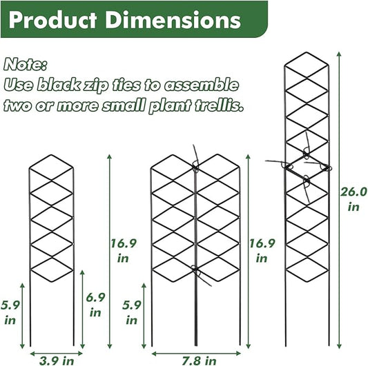 Stackable Metal Trellis for Potted Plants, 4 Packs 17 Inch Small Garden Trellis for Climbing Plants Indoor, Pothos Plant Climber Support Indoor Plant Support Stakes, Black