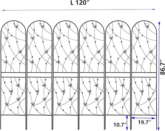 6 Pack Metal Garden Trellis 86.7" Tall Outdoor Climbing Plant Support for Roses, Flowers, Rustproof Durable Black Galvanized Tube, Lawn Garden Fence Decor Screen, 86.7" H