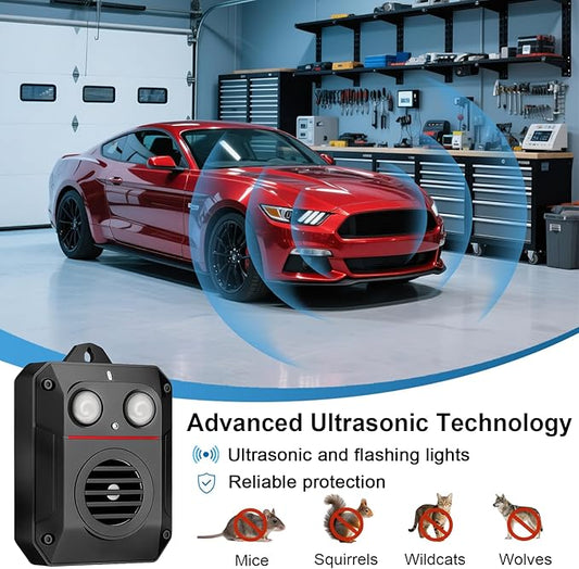 Ultrasonic Rodent Repellent with Strobe Light and Ultrasonic Wave, Effective Mouse Deterrent for Vehicle, Car, Basement, Attic, House and Garden, Keep Mice Away