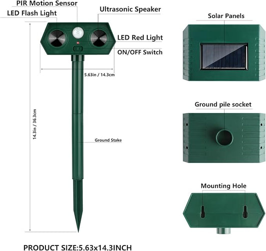 Solar Ultrasonic Animal Repellent Outdoor, Deer Repellent for Yard with RIP Sensor, IP65 Waterproof Squirrels Repeller, Effective Deterrent Cat, Raccoons, Skunks, Rabbits - Light Green