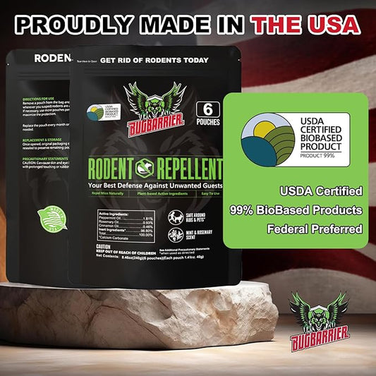 BugBarrier's Rodent Repellent Pouches – Plant-Powered Rat Mouse Deterrent, Indoor Mice, Natural Rat & Mouse Repellent Extra-Strength Peppermint & Rosemary Oils (Pack of 24)