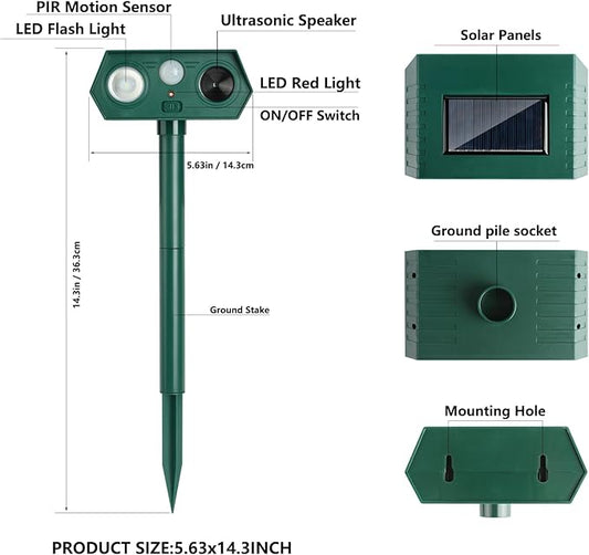 2Pack Solar Ultrasonic Animal Repeller with Strobe Light – for Gardens, Farms and courtyards Outdoor Deterrent for Raccoons, Deer, Squirrels, Cats, Skunks & Foxes