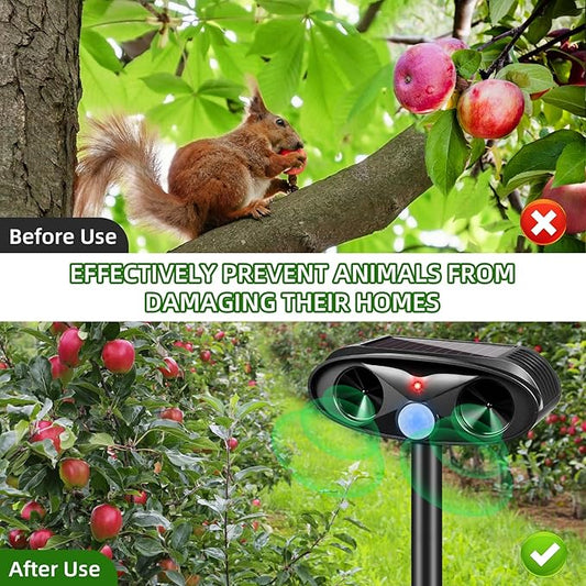 Solar Motion Sensored Animal Repellent, Motion Sensor Sound Flashing Light, Repel Rabbit, Deer, Squirrers, Birds, Fox, Raccoon, Skunk, Coyote for Yard, Outdoors