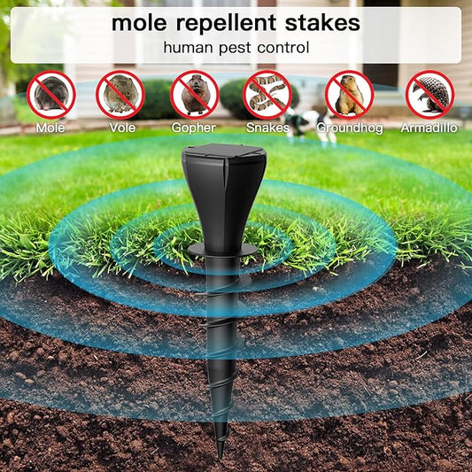 8 Pack Mole Repellent Solar Powered, Snake Vole Repellent Outdoor, IP65 Waterproof Snake Deterrent Gopher, Waterproof Sonic Mole Spikes for Lawn and Garden, Get Rid of Moles, Groundhogs, and Rodents