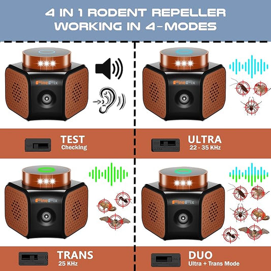 FineFix 360 Plug in Mouse Deterrent Ultrasonic Pest Repeller 4-Modes Best Thing to get rid of mice Repellent Indoor Mouseblocker for House Attic Garage Warehouse Rvs repelente ultrasonico de plagas