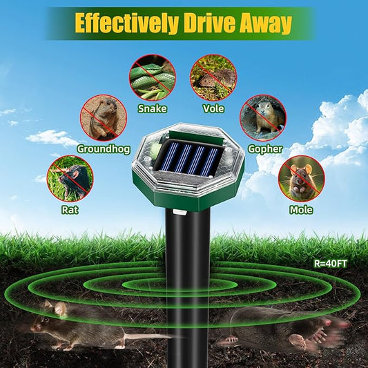 Mole Repellent Solar Powered, 8 Pack Ultrasonic Gopher Vole Repellent Outdoor, Waterproof Sonic Spikes Get Rid for Squirrel, Rat, Mice, Rodent, Skunk Repellent for Lawns Yard