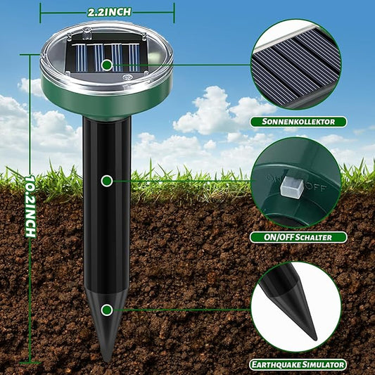 Mole Repellent Solar Powered 10 Packs, Ultrasonic Deterrent Stake for Outdoor Garden, Yard, Patio,Wide Coverage Waterproof Mole Repellent, Effective Deter Snake Gopher Rodent Groundhog