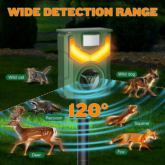 2 Pack of X-PEST Solar-Powered Ultrasonic Animal Repellent for Outdoor Yard, Waterproof Cat Deterrent with LED Flashing Lights and Motion Sensor,Effective to Repel Cats, Coyotes, Raccoons, and Deer