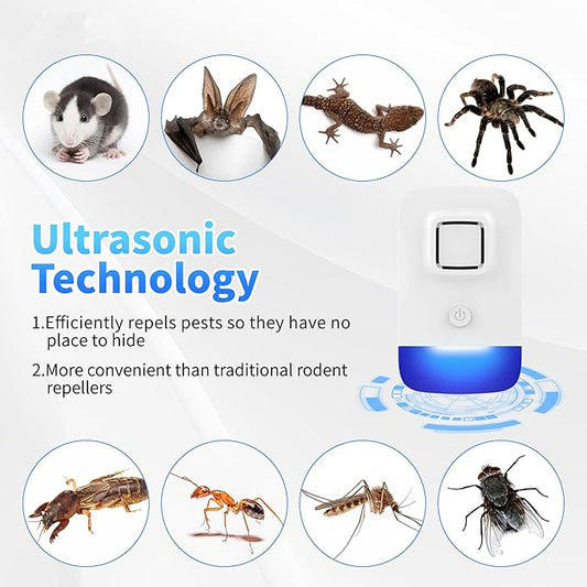 Ultrasonic Pest Repeller 6 Pack – 2025 Upgrade with Night Light, Indoor Rodent & Insect Control for Mice, Roaches, Spiders, Safe for Children & Pets