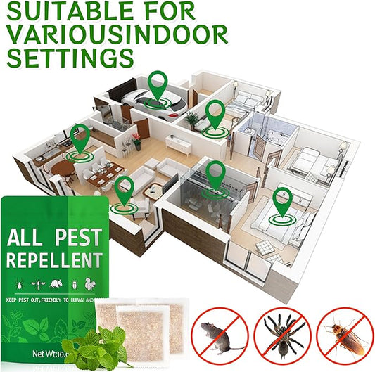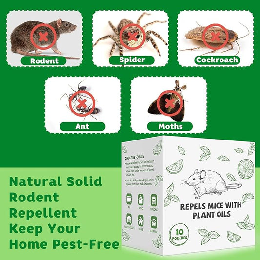 Pest Repellent Pouches, 10 Pack Peppermint Oil Repellent for Mouse, Roach, Rodent, Spider, Ant, Mice, Rats, Pest Control Indoor & Outdoor, Natural Mouse Deterrent Replace Traps Family & Pet Safe
