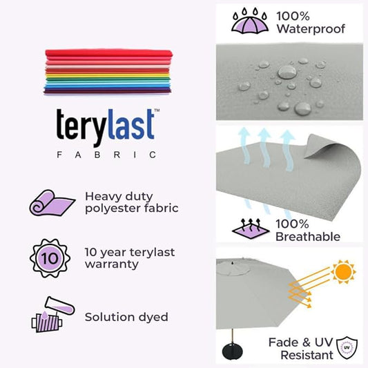 Midtown Umbrellas The Swilt 8 Feet Patio Umbrella in Terylast Matter (Grey) Polyester Fabric - Fiberglass Ribs, Auto-Tilt Aluminum Frame For Backyard, Deck, Garden, Pool - White Pole