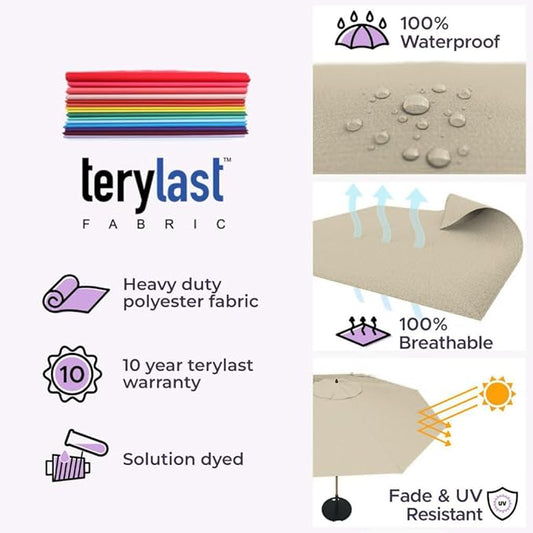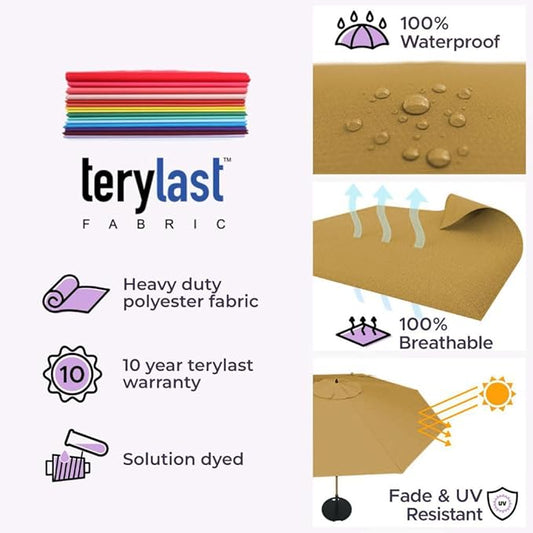 Midtown Umbrellas The Swilt 10 Feet Patio Umbrella in Terylast Sand (Tan) Polyester Fabric - Fiberglass Ribs, Auto-Tilt Aluminum Frame For Backyard, Deck, Garden, Pool - White Pole