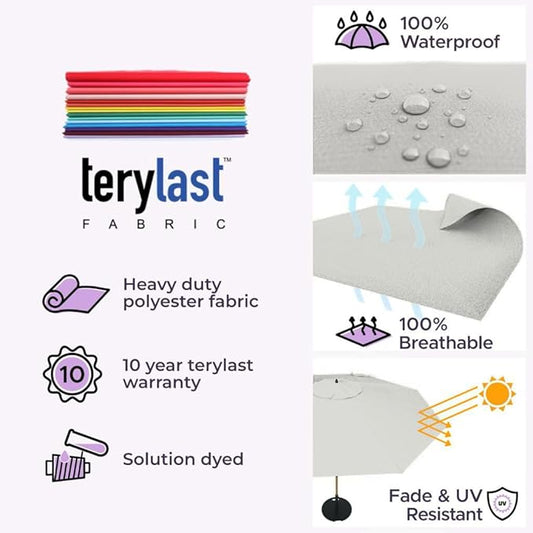 Midtown Umbrellas The Swilt 10 Feet Patio Umbrella in Terylast Off Cream (Off White) Polyester Fabric - Fiberglass Ribs, Auto-Tilt Aluminum Frame For Backyard, Deck, Garden, Pool - White Pole