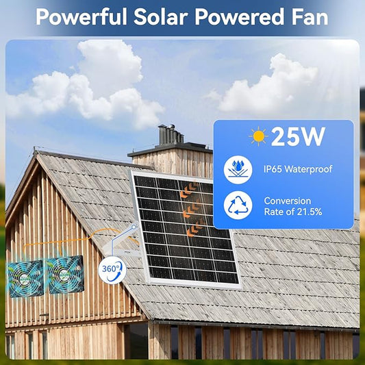 Solar Fans for Outside, 19.6 Ft Total Cable, IP68 Waterproof, 25W 18V Solar Powered Exhaust Fan Kit, 4.7 Inch Chicken Coop Fan Waterproof Fans for Chicken Coops, Greenhouses, and Shed
