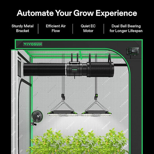 VIVOSUN Smart Air Filtration S4 Kit 4", AeroZesh S4 Inline Duct Fan with E12 Speed Controller, Carbon Filter & 8' Ducting, Cooling & Ventilation System for Grow Tents, Indoor Gardening, Hydroponics