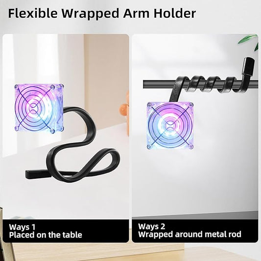 3.15" 80mm Adjustable Gooseneck Mini Fan Low Noise 5V USB Vent Cooling Fan with LED Light for Small Plants Electronics Mic Arm Compact Ventilation