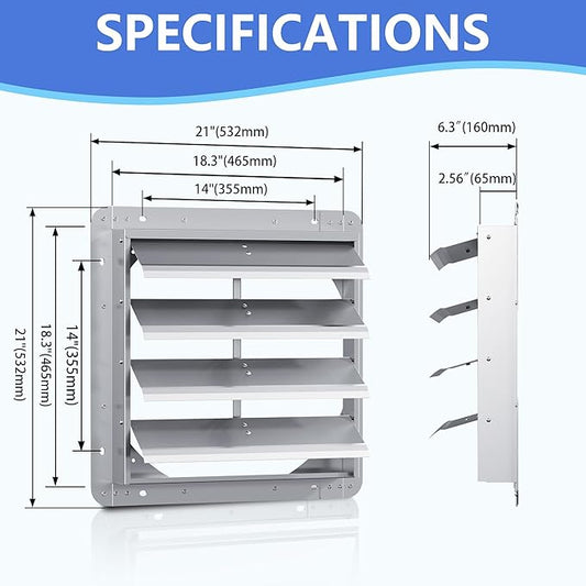 18 Inch Galvanized Shutter Exhaust Louver Vent, Automatic Gravity Shutter Louver Vent for Home Attics, Workshops, Barn, Greenhouse (Motor&Blades are not Included)