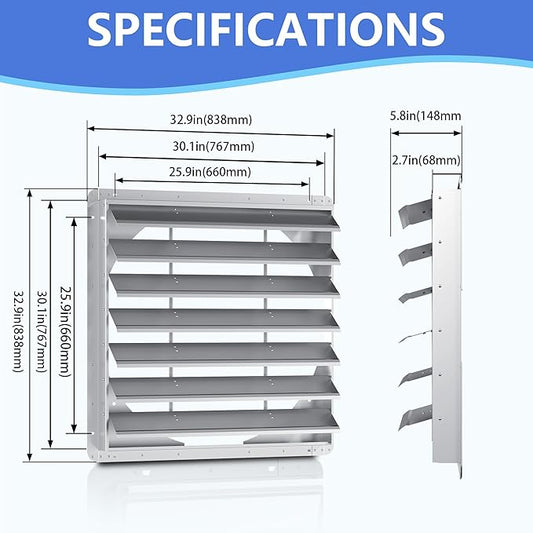 30 Inch Galvanized Shutter Exhaust Louver Vent, Automatic Gravity Shutter Louver Vent for Home Attics, Workshops, Barn, Greenhouse (Motor&Blades are not Included)