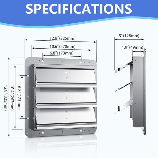 12 Inch Galvanized Shutter Exhaust Louver Vent, Automatic Gravity Shutter Louver Vent for Home Attics, Workshops, Barn, Greenhouse (Motor&Blades are not Included)