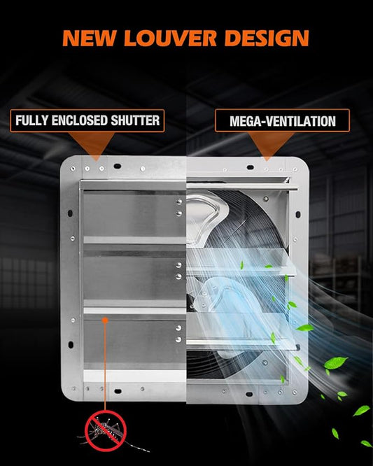 JVO 14" Shutter Exhaust Fan - 1520 CFM, Wall-Mounted for Greenhouses, Attics, Garages & Chicken Coops. Ideal Attic Fan, Greenhouse Vent & Coop Exhaust for Powerful Ventilation & Cooling