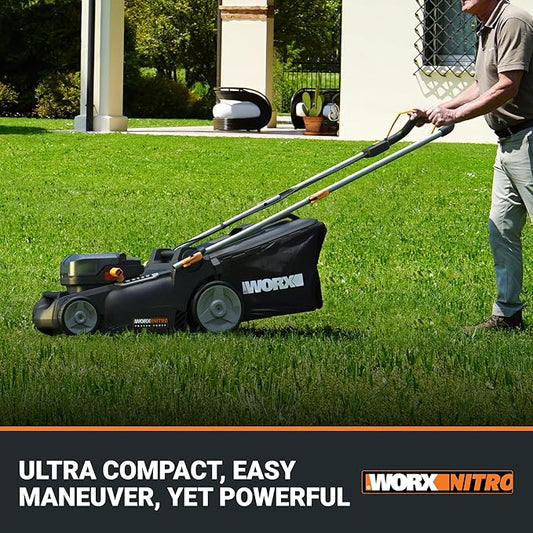 WORX Nitro 40V 16" Cordless Lawn Mower w/Brushless Motor 2.0 & Intellicut, 2-in-1 Electric Mower w/Mulch Blade, Lightweight Push Lawn Mower for 1/4 Acre WG737 – Batteries & Charger Included