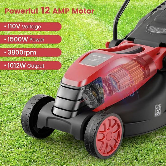 Goplus Lawn Mower, Electric Lawn Mowers with Grass Collection Box, 12 AMP Motor, 14" Cutting Deck, 3 Adjustable Cutting Positions, Walk-Behind Small Corded Lawnmower for Garden Farm Yard