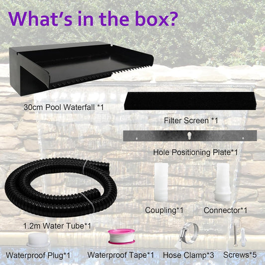 POPOSOAP Pond Waterfall Spillway with Pump Kit, 304 Stainless Steel Pond Waterfall, Pond Spillway with 9.8FT Corrugated Tubing for Garden,Water Features (8“)-P42