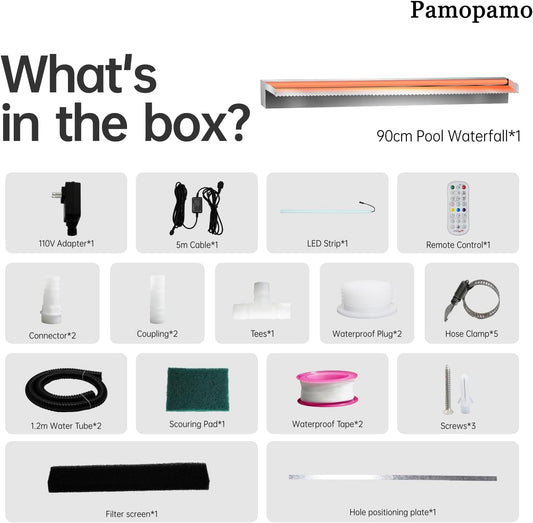 Pond Waterfall Spillway Stainless Steel Pool Fountain, APP Control LED Lighted Waterfalls Kit, Outdoor Water Flow Waterfalls Kit for Garden Patio Koi Pond Decoration-35.4"x7.8"x3.9"
