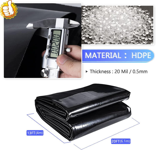 ToLanbbt Pond Liner 13 x 20 Ft HDPE Pond Liners, 20 Mil UV Resistant Preformed Pond Liner Easy Cutting, Pond Liner for Natural Looking Ponds, Waterfall, Koi Pondsand Water Garden (Black)