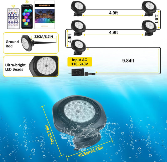 Fountain Light LED Underwater Pond Lights 18W RGB Color Changing with Remote AC12V IP68 Waterproof Submersible Light for Garden Fountain Pond