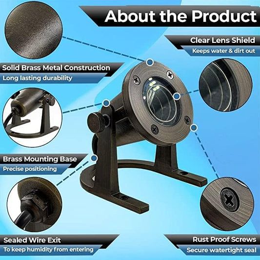 Waterproof Brass Underwater Light Fixture for Patio, Pond, Fountain, Waterfall - 2 Pack
