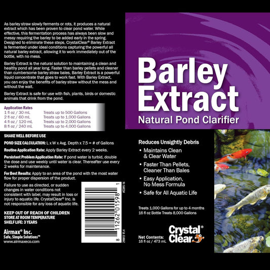 CrystalClear Barley Extract Water Garden & Fountain Clarifier, Natural Liquid Concentrate to Treat Cloudy Ponds, Koi Fish, Plant & Pet Safe, 16 Ounces