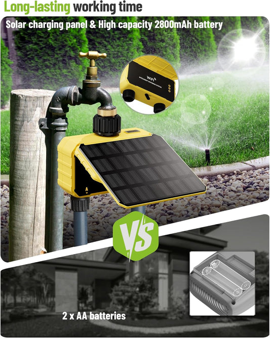 Smart WiFi Water Timer 2 Zone No Need Gateway, Solar WiFi Sprinkler Valve Timer for Garden Hose APP & Remote Control Alexa & Google Voice Compatible,Rain Delay, Manual Mode Sprinkler System