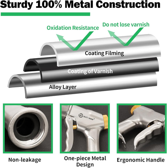 AUTOMAN Garden Hose Nozzle - 7 Patterns Sprayer, 100% Metal High Pressure Spray Nozzle, Labor-Saving Design, Heavy Duty Water Hose Nozzle for Garden Watering, Car Washing, Window Cleaning,Pets Bathing