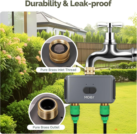 MOES WiFi Sprinkler Timer 2 Zone with Brass Inlet & Outlet, Water Timer for Garden Hose Faucet, Programmable Watering Irrigation 2 Outlet, Smart Watering System for Lawns and Yard Work with Alexa