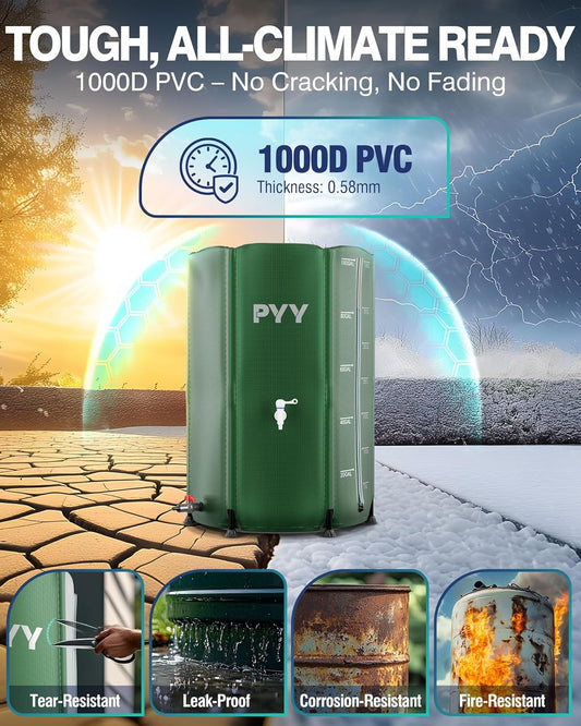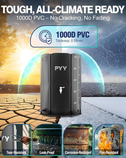 PYY Rain Water Collection Barrel - 53 Gallon Black Water Storage Tank with Spigot, Hose and Portable Bucket, Large Plastic Collapsible Rain Catcher Catchment System to Collect Rainwater from Gutter