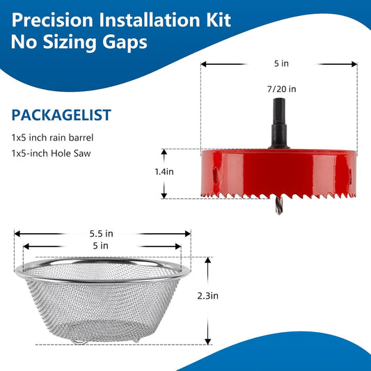 5" Rain Barrel Screen Filter with Hole Saw - Aluminum Mesh Cover DIY Kit for Rainwater Collection System (rain Barrel Diverter kit) (rain Barrel Diverter kit)